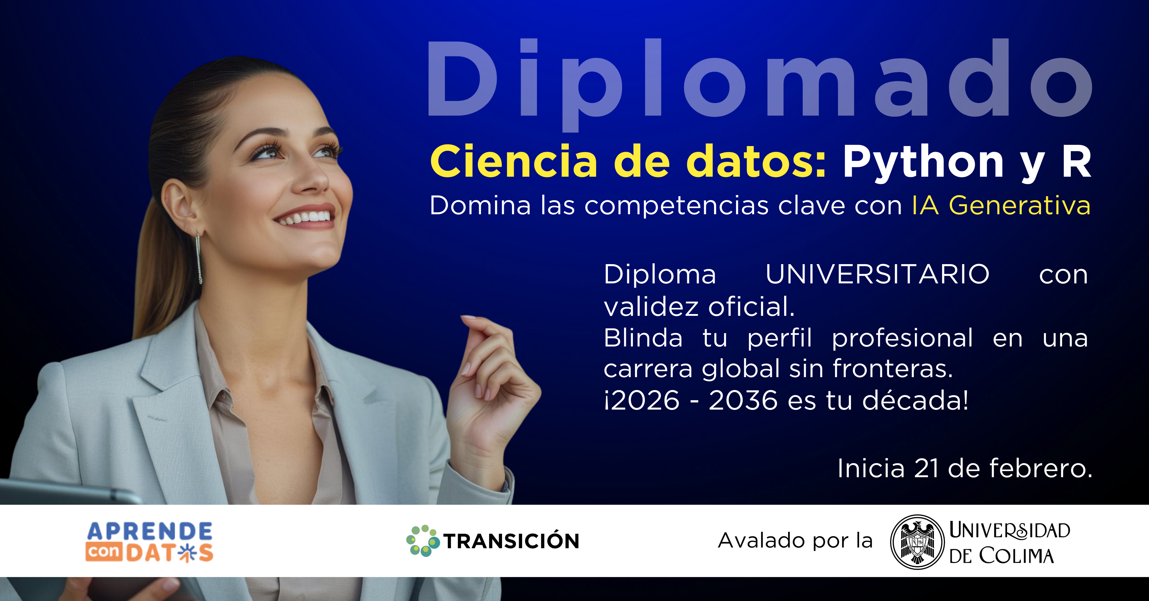 Objetivo general: Formar especialistas capaces de liderar el ciclo de vida completo de los datos, desde la extracción y limpieza hasta el modelado predictivo, utilizando IA Generativa como catalizador de productividad para resolver problemas complejos en una carrera global sin fronteras.