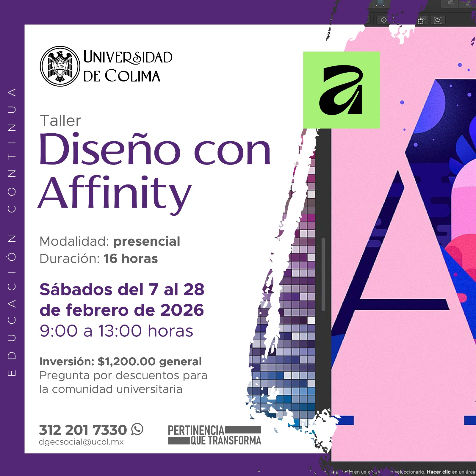 Objetivo de aprendizaje: La persona participante será capacitada en el uso fundamental de las herramientas clave de la suite Affinity para crear y manipular gráficos, fotografías y diseños de maquetación, logrando flujos de trabajo eficientes y profesionales.